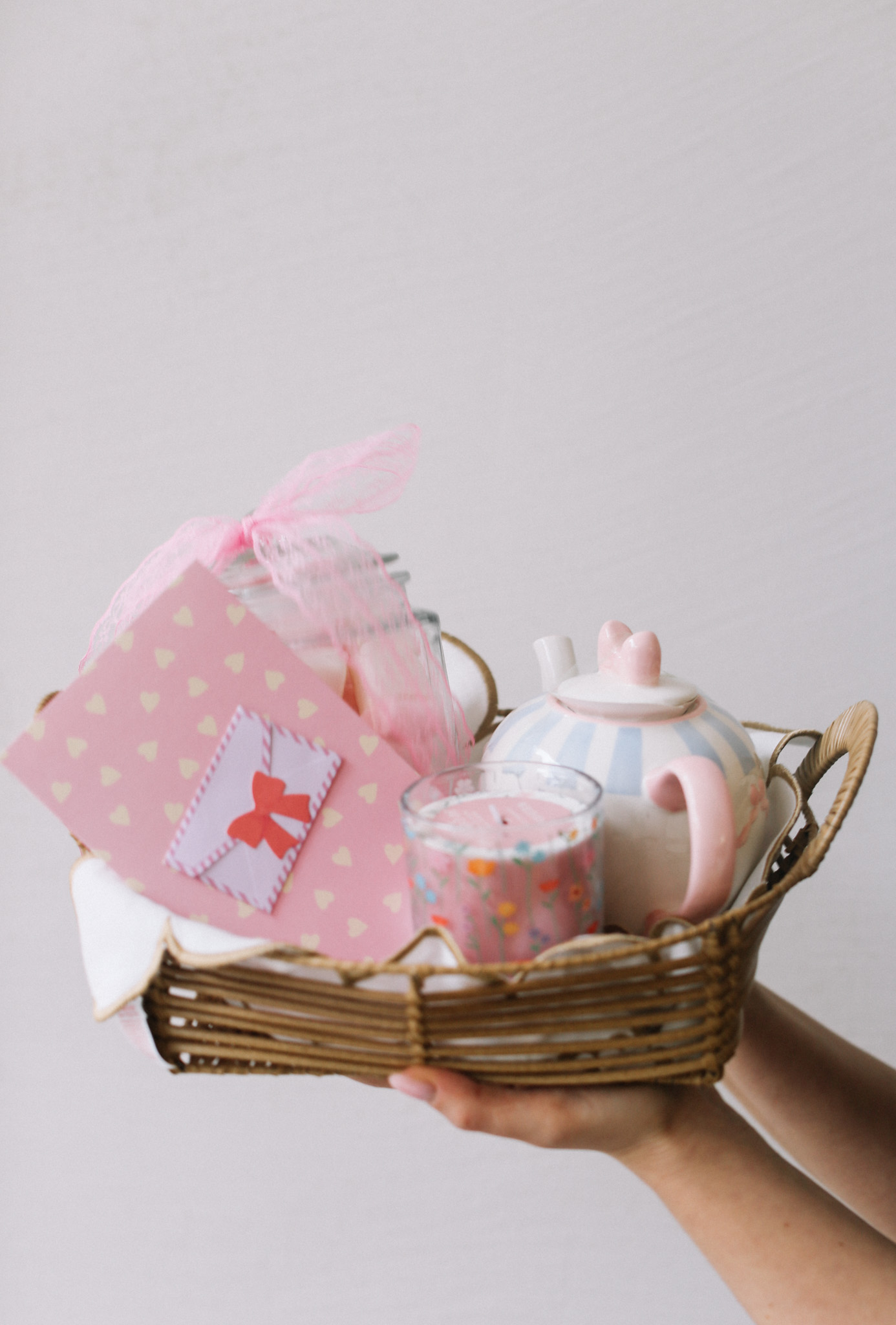 სასაჩუქრე ნაკრები ჩაიდანი, მარშმელოუს ქილა, მისალოცი ბარათი, სურნელოვანი სანთელი