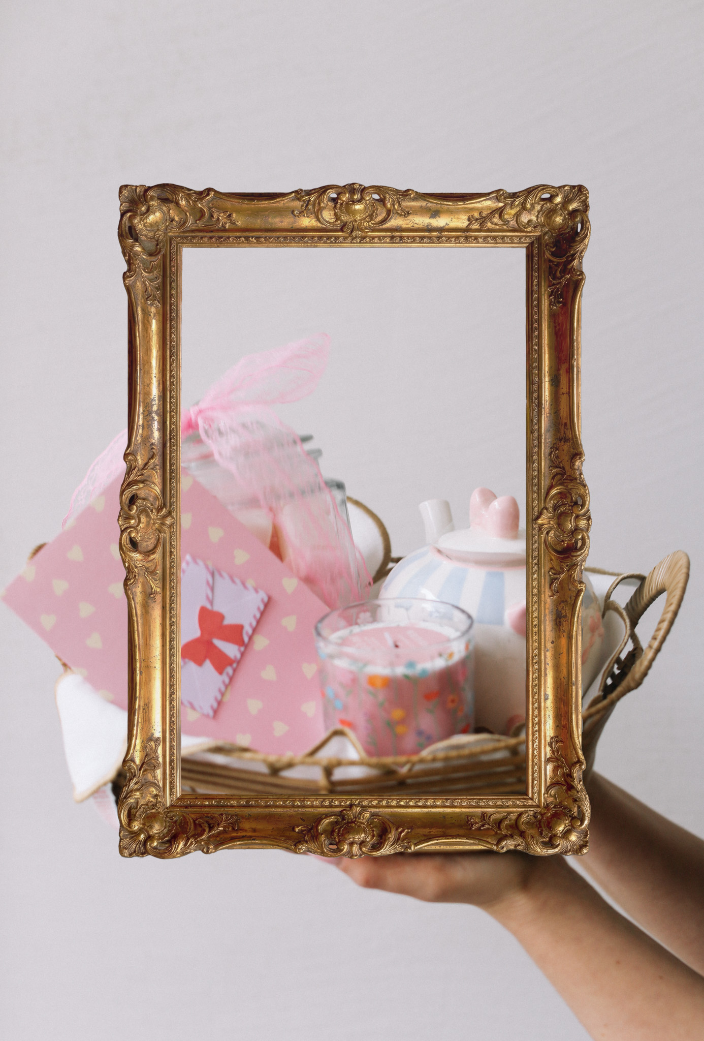სასაჩუქრე ნაკრები ჩაიდანი, მარშმელოუს ქილა, მისალოცი ბარათი, სურნელოვანი სანთელი